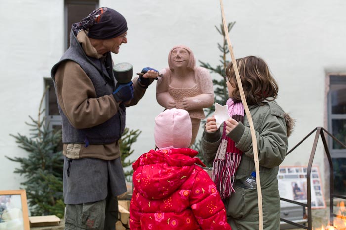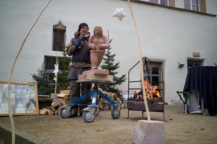 Aus rotem Sandstein entstand im November 2011 diese ungewöhnliche Engelfigur. Vorbereitet wurde sie im Atelier in Kalteggolsfeld, bei der Feinarbeit durften die Besucher des Kulmbacher Kunsthandwerkermarkts am ersten Adventswochenende zuschauen.